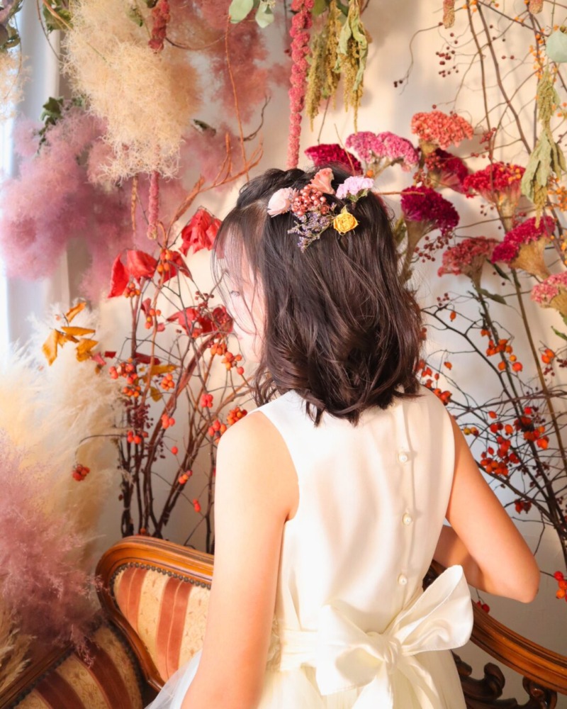 ドライフラワーのヘッドパーツでヘアアレンジがおすすめです