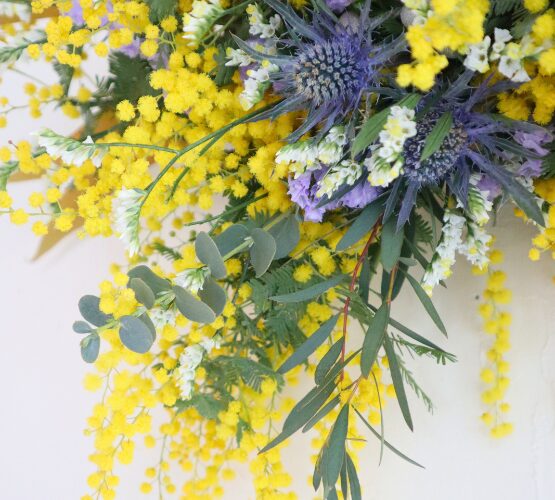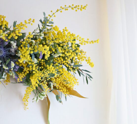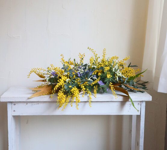 季節のお花ミモザをたくさん使った、やさしい香りと明るいイエローが春を感じさせますね。